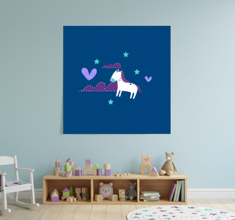 Reference: G952Brighten up your little one's room with our Nursery poster cute unicorns with clouds and stars. This enchanting design features playful unicorns dancing among fluffy clouds and sparkling stars, creating a whimsical and joyful atmosphere. The poster is crafted on 180g/m2 grammage, making it perfect for posters, with a semi-matt finish that ensures high colour intensity without any reflections. Your child's imagination will soar in a space filled with such delightful art!