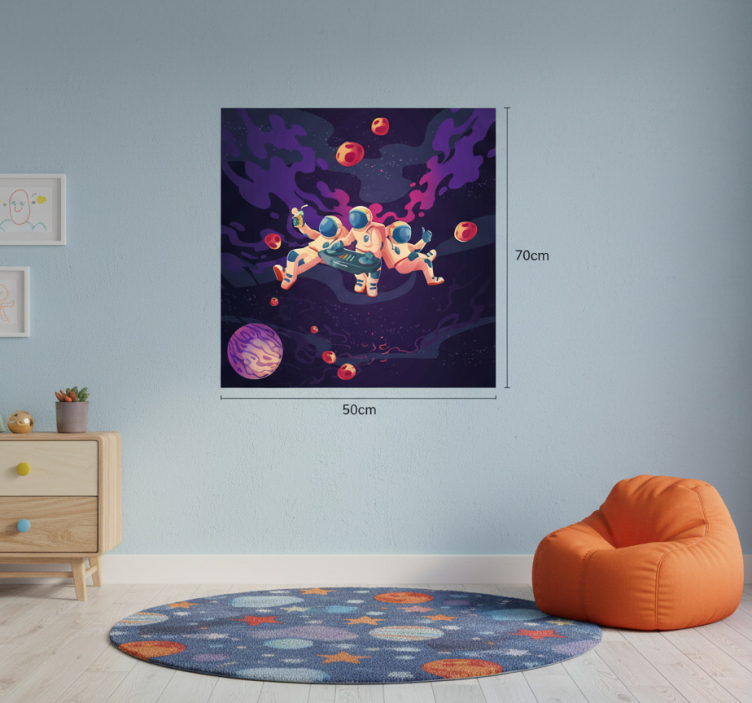 Reference: G926Introducing our Nursery poster of jamming cartoon astronauts, a vibrant and whimsical design that captures the imagination! This poster features lively cartoon astronauts joyfully jamming in space, surrounded by colorful celestial elements. The 180g/m2 grammage ensures durability, while the semi-matt finish provides a sleek look without reflections. With its high color intensity, this artwork will certainly brighten any child's room!