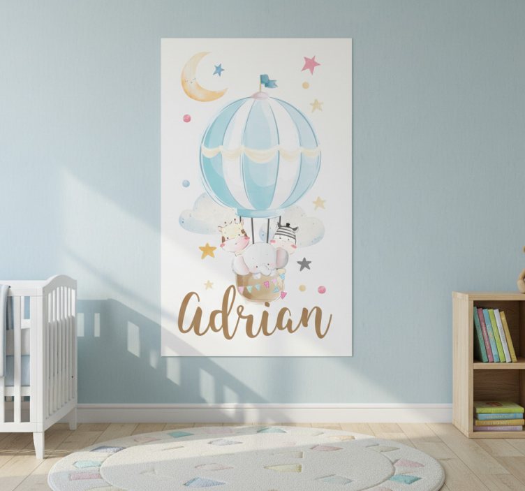 Reference: G938Bring a touch of whimsy and cheer to your child's space with our enchanting Nursery poster of three animals on balloons with stars. This delightful design features charming animals floating on colorful balloons amidst a starry backdrop, creating a dreamy atmosphere perfect for any nursery. With a 180g/m2 grammage that ensures durability, a semi-matt finish that eliminates reflections, and high color intensity for vibrant visuals, this poster will captivate both children and adults alike!