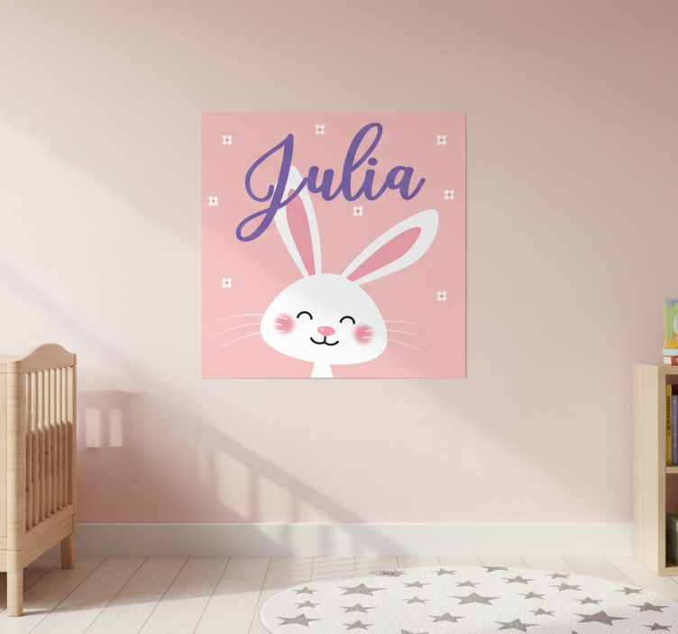 Reference: G921Introducing our beautifully designed Nursery poster white bunny with name, a charming addition to any child's room! This delightful poster showcases a whimsical white bunny, seamlessly blending soft pastel colors with enchanting graphics that create a soothing atmosphere. Featuring a semi-matt finish that prevents reflections, this poster is printed on high-quality 180g/m2 paper, ensuring vibrant color intensity that will captivate the hearts of both children and parents alike.