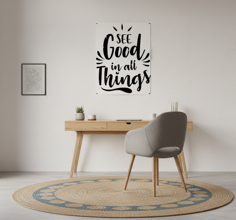 To beautifully display the See good in all things office poster, consider using double-sided adhesive tape for a seamless look on your wall. Alternatively, frame it for a more polished presentation, securing it with stronger adhesives. For a flexible option, thumbtacks or reusable blu-tack can also be used, allowing you to easily reposition your office space poster as desired.