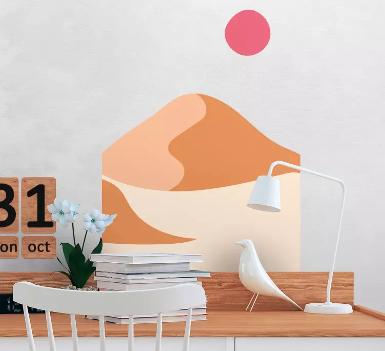 Transform your space with our stunning Abstract sand dunes decoration wall sticker, featuring captivating illustrations of mountains, a radiant sun, and flowing sand dunes. This minimalist design beautifully captures the essence of nature, creating an atmosphere of tranquility and inspiration in any room!