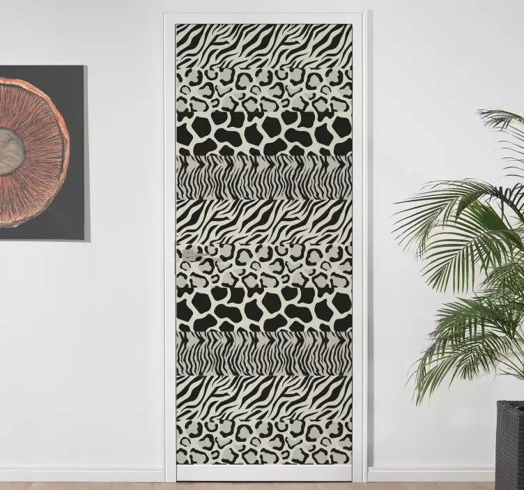 Transform your door into a stunning focal point with our Animal print pattern door sticker. Featuring an eye-catching design that combines black and white animal prints, including leopard and zebra patterns, this adhesive is perfect for those who love a bold statement. The intricate animal prints are not just designs; they bring a touch of wild elegance to any space!