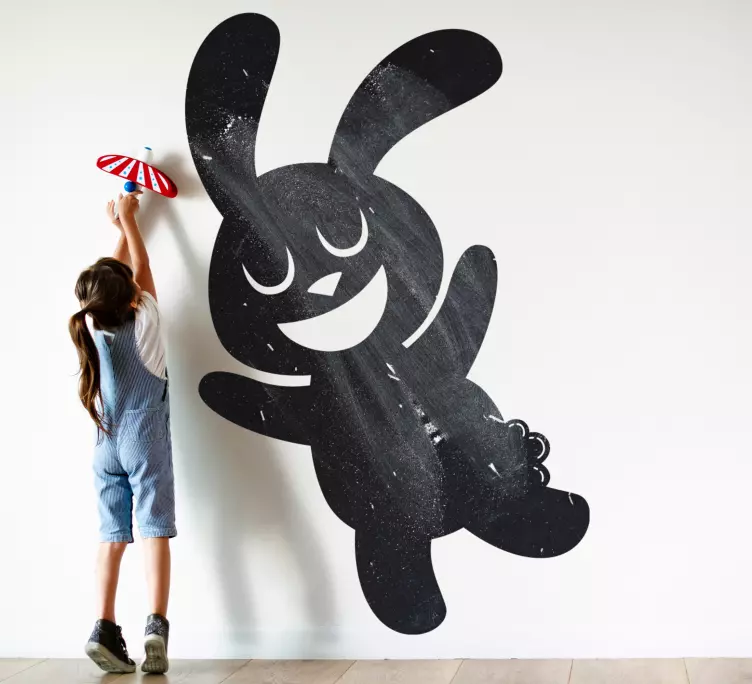 Introducing our Chalkboard sticker joyful bunny character, featuring a delightful bunny in a whimsical and playful silhouette. This happy, smiling cartoon character brings a sense of joy and fun to any space, making it an ideal choice for children's rooms or play areas. With its cheerful design, this sticker is sure to brighten up your walls!