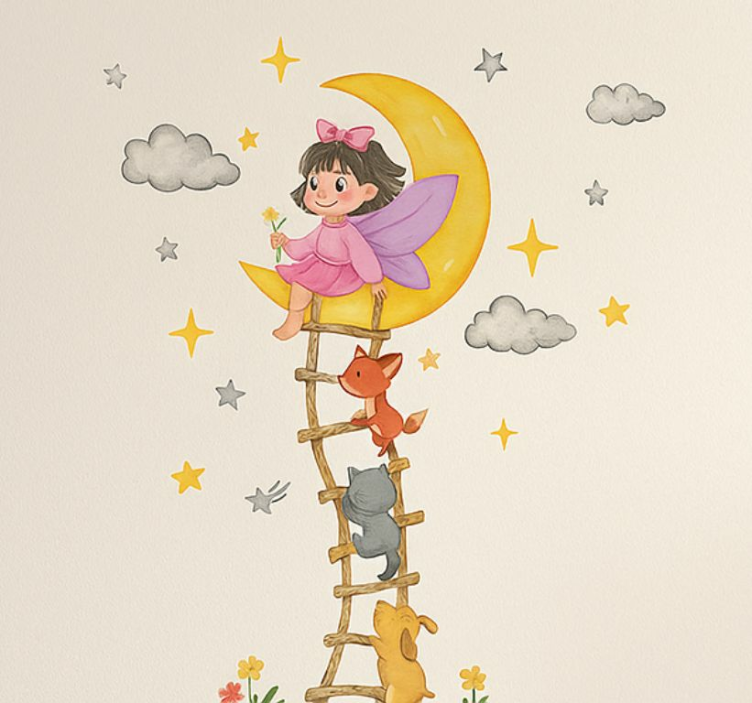 Installing the Childrens' wall stickers moon girl wall decal childrens' wall stickers is a breeze! Simply ensure the surface is clean and dry for the best adhesion. Peel off the backing and gently apply the decal to your desired area. For a flawless finish, smoothing it out with a spatula can help eliminate any air bubbles, ensuring a beautiful appearance. Enjoy the magic of easy application!