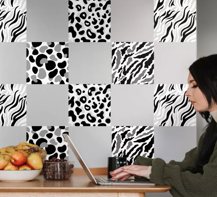 Introducing our stunning Elegant patterned tiles decoration wall sticker that beautifully blends modern design with a touch of wild elegance! Featuring a captivating leopard animal print, this wall sticker showcases an abstract and geometric pattern that adds depth and texture to your interiors. The monochrome color scheme ensures that it fits seamlessly into any decor, making it a perfect choice for those looking to elevate their space with a contemporary flair!