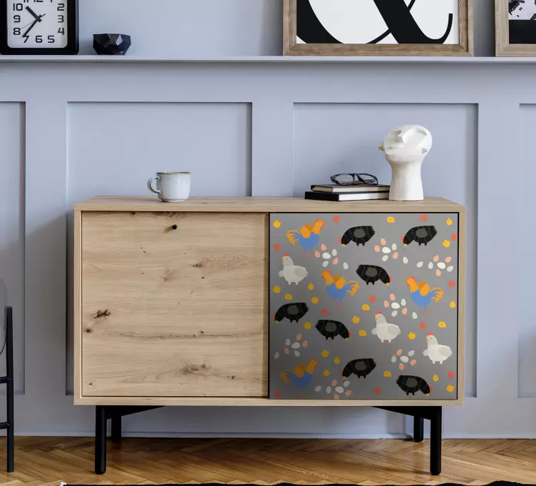 Transform your space with our vibrant Farm animal wall sticker farm animals design, featuring a playful array of colorful farm animals, including charming chickens, nestled among delightful furniture and a whimsical pen pattern. This design brings a joyful atmosphere to any room, making it perfect for children's spaces or anyone who loves the rustic appeal of farm life!