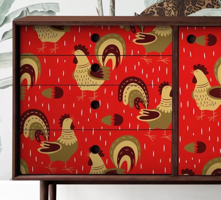 Transform your space with our Farm animal wall sticker playful rooster design, featuring a delightful illustration of colorful roosters. This vibrant pattern brings a touch of the farm into your home, making it a perfect choice for animal lovers and those who appreciate unique furniture decor. The rich reds and playful designs create a cheerful atmosphere that brightens any room!