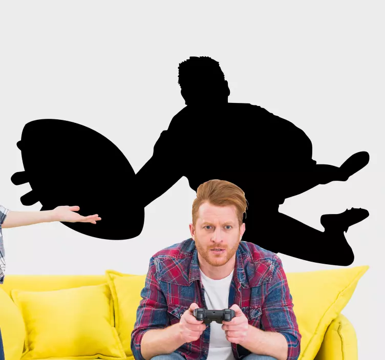 Introducing our Football sticker energetic soccer player, a vibrant and dynamic design that captures the essence of sportsmanship and action! This stunning graphic features a rugby player in mid-motion alongside a football and a striking silhouette that evokes excitement and energy. Perfect for any sports enthusiast, this sticker is designed to bring life to your space!
