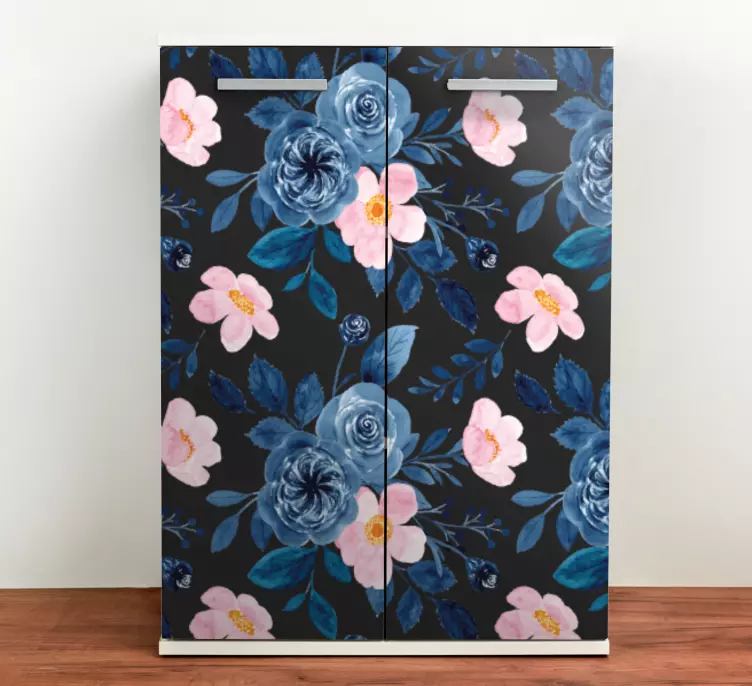 Reference: A51591A captivating floral pattern featuring a blend of blue and pink flowers set against a dark background. This design brings a vibrant and refreshing touch, enhancing the ambiance of any space it adorns. Ideal for adding a splash of nature's beauty.