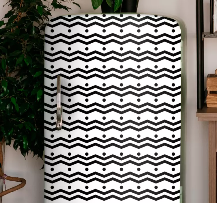 Transform your kitchen with our stunning Fridge sticker zigzag pattern overlay. This eye-catching design features a modern black and white zigzag pattern, beautifully arranged in geometric lines that will invigorate your home. The monochrome aesthetic adds a touch of sophistication, making it a perfect addition to any contemporary decor.