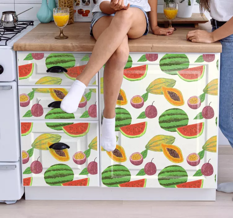 Introducing our vibrant Fruit sticker fruit design creation, a stunning graphical delight that features a playful arrangement of watermelons, papayas, and lemons in a colorful tropical pattern. Perfect for adding a splash of fruity fun to your furniture, this design bursts with energy and creativity, making it an ideal choice for any space that craves a lively touch!