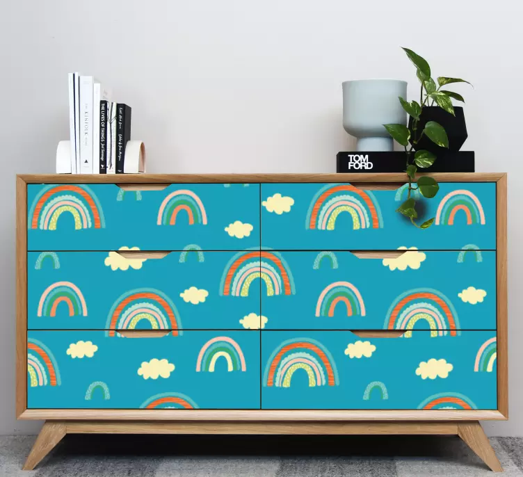 Transform your living space with our Furniture sticker colorful rainbow designs! Featuring vibrant rainbows and whimsical clouds, this playful pattern will breathe life into your furniture. Perfect for those who appreciate colorful aesthetics, our stickers bring a touch of joy and creativity to any room. Whether it's a child's bedroom or a cozy living area, this design is sure to captivate and inspire!