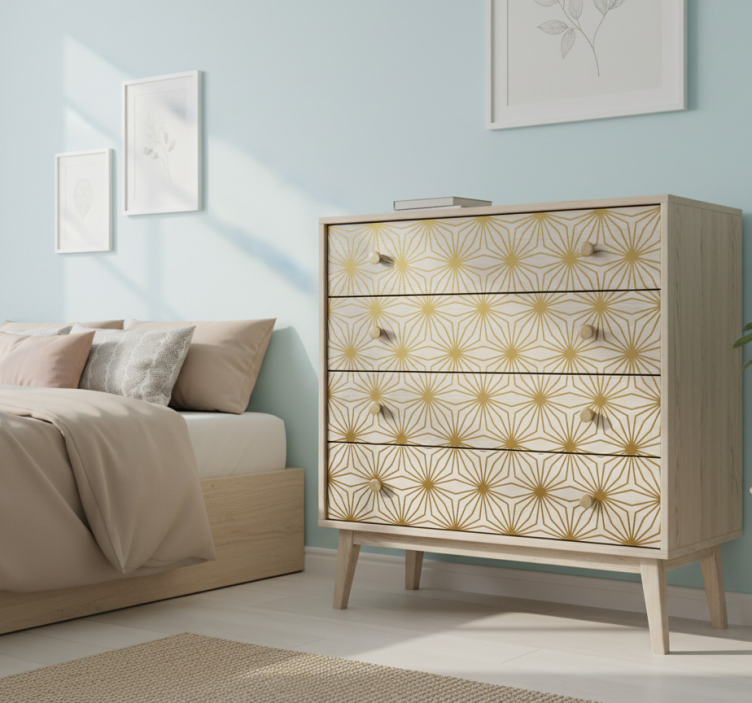 Elevate your home or office décor effortlessly with our Furniture sticker gold floral geometric design furniture sticker. This unique piece inspires creativity and adds a touch of luxury to any room. Imagine the compliments you'll receive as guests admire the beautiful interplay of floral and geometric elements, making your space feel more inviting and stylish!