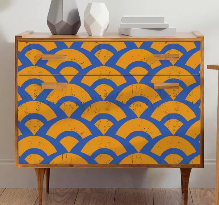 Introducing our stunning Furniture sticker wave pattern design, a beautiful blend of geometric shapes and minimalist aesthetics. This eye-catching design features abstract bows in vibrant shades of blue and orange, perfect for adding a touch of elegance to any piece of furniture. Transform your space with a simple yet impactful decor choice!