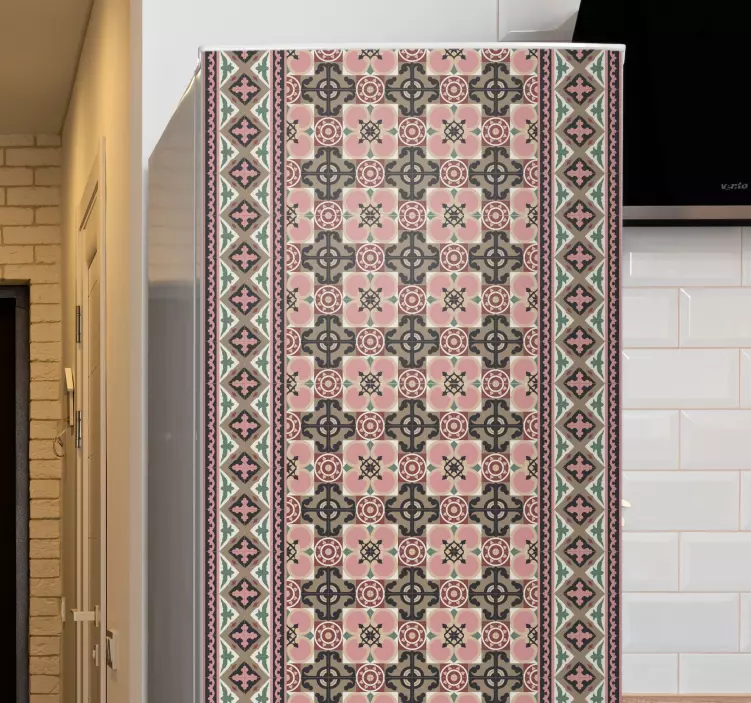 Transform your kitchen with our stunning Victorian geometric style fridge sticker. This vibrant design combines colorful tiles with ornate floral patterns, inspired by traditional Toledan artistry. The intricate geometric shapes bring a unique charm to your fridge, making it a true centerpiece in your home!