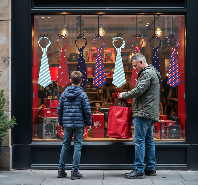 Transform your shop into a festive haven with our hanging ties shop window sticker. This eye-catching decoration not only celebrates occasions like Father’s Day but also enhances the overall aesthetic of your storefront. Its vibrant colors and unique design will inspire joy and curiosity in passersby, making it a must-have for any retail space! Let your windows speak volumes about the special moments worth celebrating!
