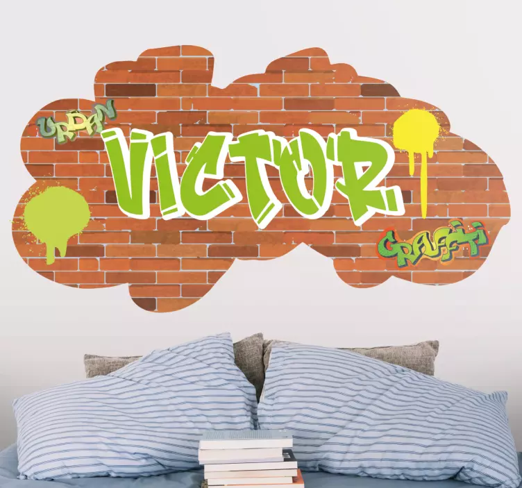 Transform your space with our Headboard wall sticker urban customized name. This stunning design blends elements of graffiti, street art, and urban art to create a vibrant visual experience. Featuring a lively brick wall texture and colorful cloud motifs, this personalized piece brings the energy of the city right into your home. The combination of grafiti and urban aesthetics makes it a perfect statement piece for anyone looking to express their individuality!