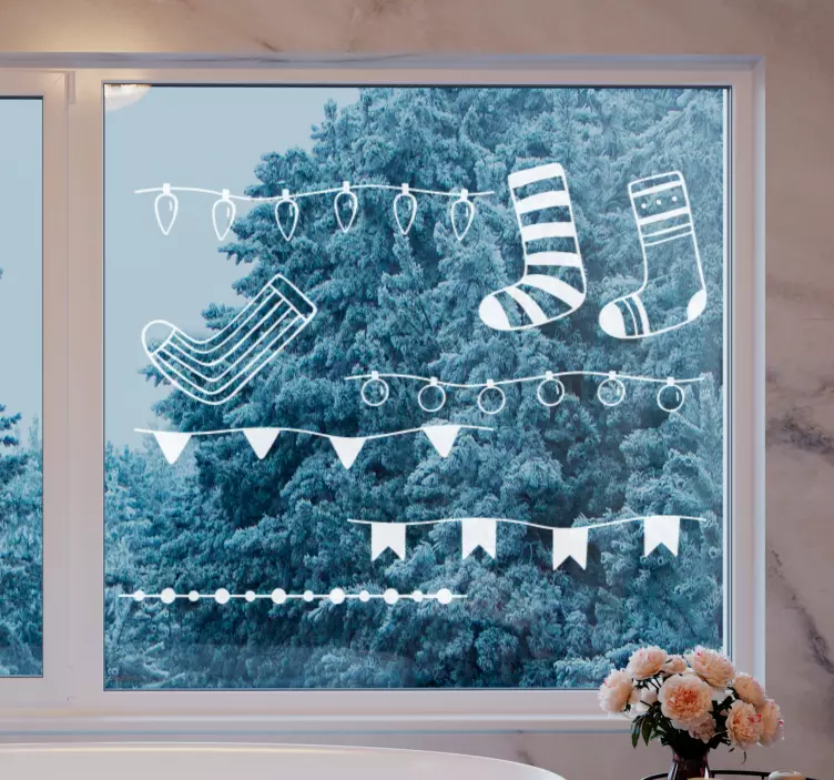 Transform your holiday season with our vibrant Holiday sticker holiday sock showcase! This delightful design features a charming assortment of stockings and sock motifs, adorned with festive Christmas ornaments, twinkling lights, and whimsical garlands. Perfect for enhancing your window displays, this window sticker brings a joyful festive spirit to any home. Imagine the smiles it will bring as you deck your halls with our eye-catching banners!
