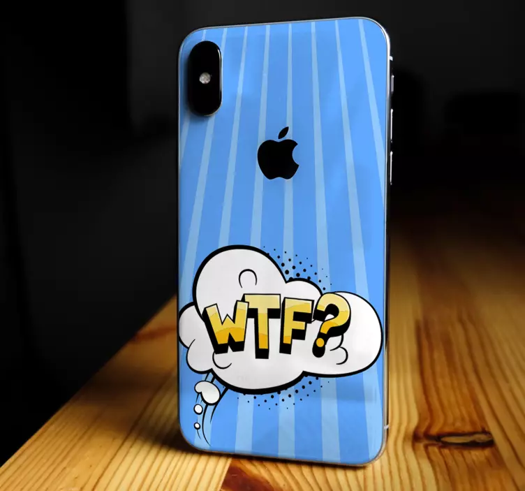Reference: A48535A vibrant design features a thought bubble with the text 'WTF?'. The playful typography stands out against a light blue background adorned with vertical stripes, creating a modern aesthetic that can enhance personal expression.