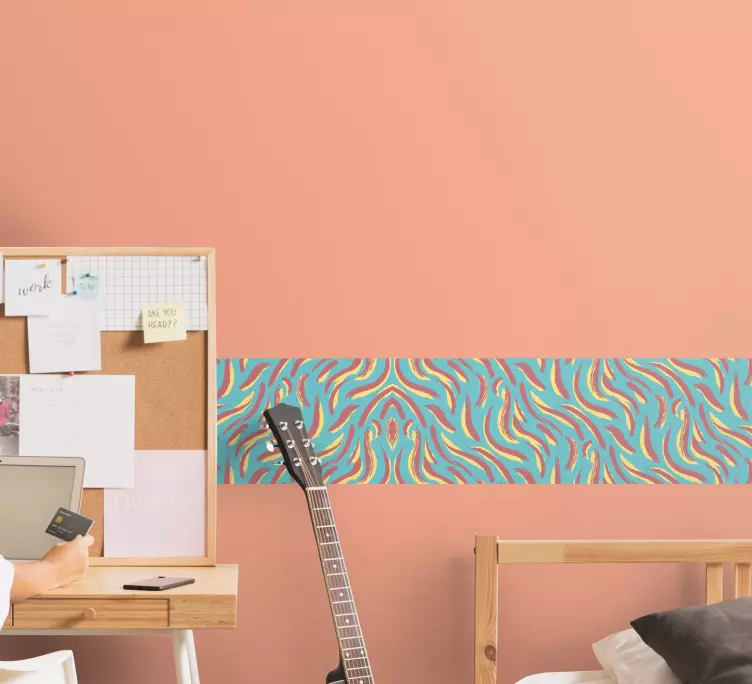 Applying the Location sticker vibrant abstract curves Location wall decal is a breeze! Simply choose your desired flat surface, peel off the backing, and smooth it onto the wall. Its built-in adhesive ensures a secure fit, making installation quick and easy!
