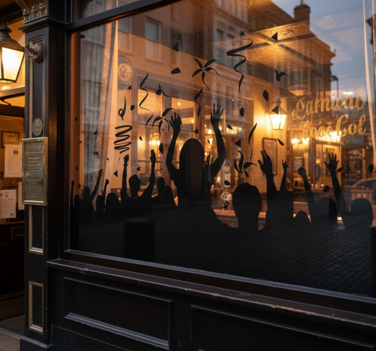 Shop window sticker celebrating carnival crowd