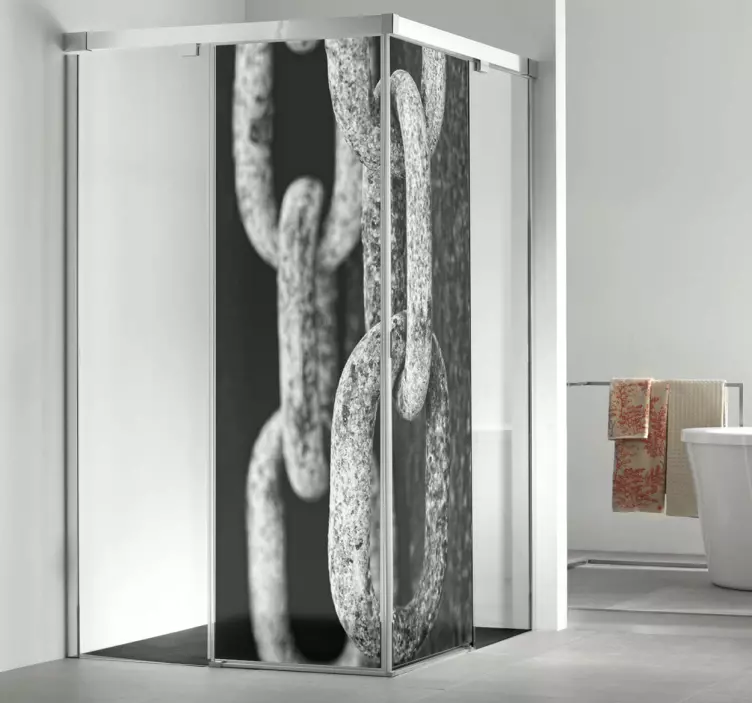 Decorate the screen of your shower with an artistic sticker showing a photograph of an old chain.