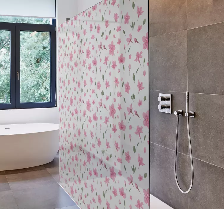 Introducing our stunning Shower screen sticker botanical design creation, a vibrant and artistic addition to your bathroom decor! This exquisite design features a beautiful watercolour floral pattern in soft pink hues, celebrating the elegance of nature with intricate flowers that dance across the surface. Transform your shower experience into a serene oasis filled with the charm of a botanical garden!