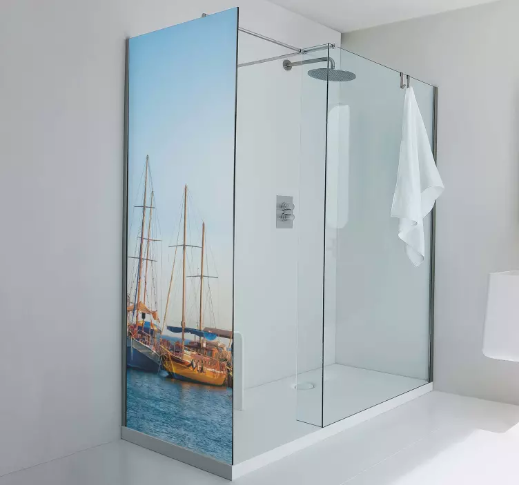 Transform your bathroom into a serene maritime escape with our Shower screen sticker sailing boats scene. This stunning design features charming boats gracefully sailing alongside a picturesque dock, evoking a sense of adventure and tranquility. With captivating photography that brings the essence of a harbor and marine life right into your shower space, this sticker serves as both a practical and aesthetic enhancement. Imagine the feeling of being outdoors, surrounded by the beauty of water and sailing, every time you step into your bath!