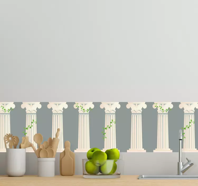 Transform your space with our Wall border sticker classic column design, a stunning blend of greek architecture and elegant aesthetics. This striking design features intricately detailed columns adorned with vine motifs, making it the perfect choice for enhancing your kitchen design or any interior style. The harmonious blend of classic elements brings an air of sophistication to your walls, making it a fantastic addition to your home decor!