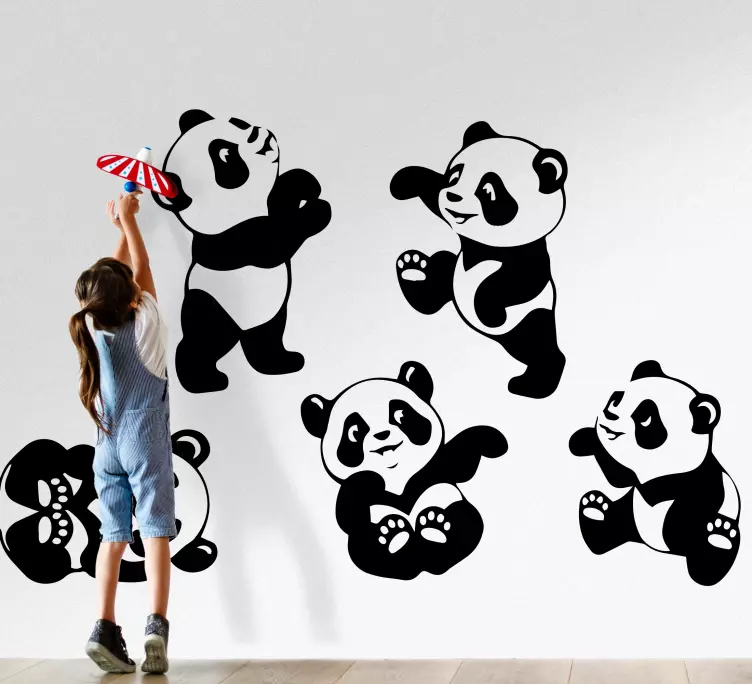 Reference: A48530A playful arrangement featuring various panda characters in charming poses. The design emphasizes the innocence and joy of childhood, making it perfect for a child's space. Each panda reflects a sense of fun and adventure, encouraging imagination and creativity.