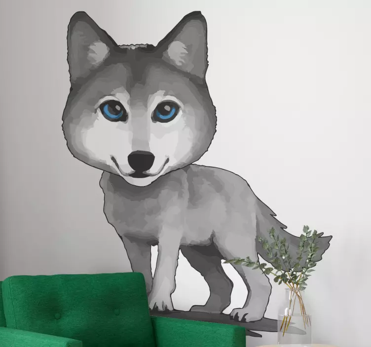 Transform your space with our stunning wolf character illustration wall sticker, featuring a vibrant cartoon design that captures the essence of this majestic animal. The captivating illustration showcases a charming wolf with blue eyes, brought to life through a beautiful watercolour painting technique. This cute and artistic depiction adds a touch of whimsy and personality to any room, making it the perfect decorative accent!