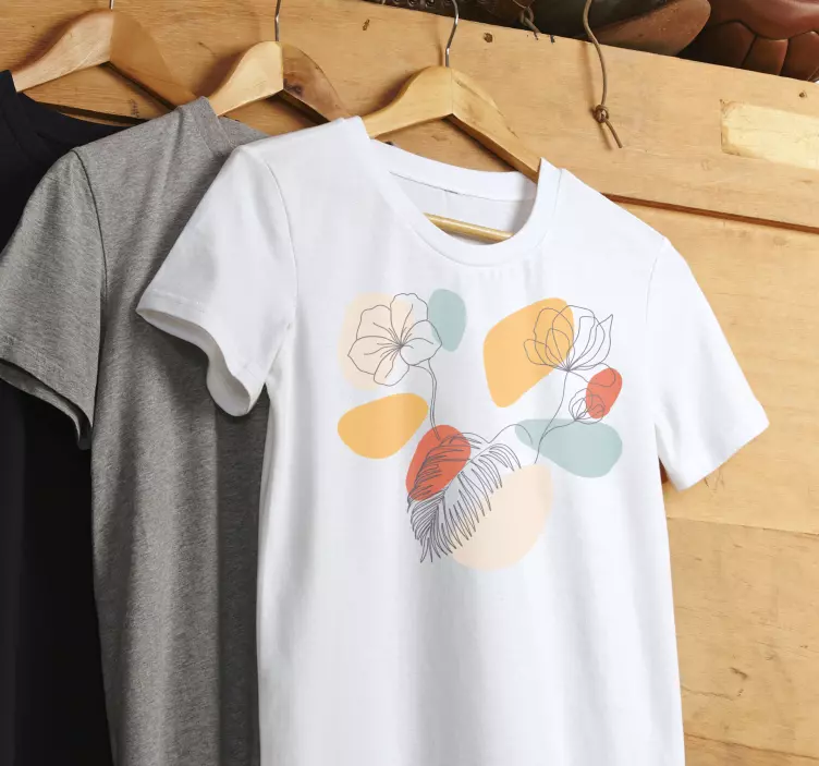 Reference: T4970This captivating design features a floral composition with soft colors and elegant line art. The blend of pastel shades creates a harmonious visual appeal, perfect for a variety of occasions. Ideal for those who appreciate modern aesthetics and stylish simplicity in their wardrobe.