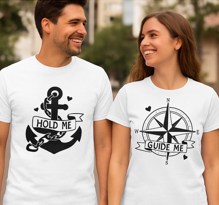 Caring for your Hold me guide me couple t-shirt is easy and hassle-free! Simply machine wash it at 30 degrees to keep it looking fresh and vibrant. For best results, we recommend ironing it inside out or using a barrier cloth on the design to maintain its quality. Enjoy your stylish t-shirt for many wears to come!