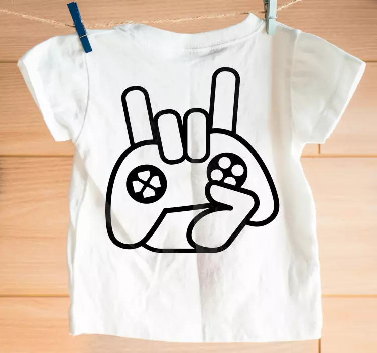 Reference: T4928This playful design features a gaming controller with a hand making a rock gesture. Perfect for kids who love gaming, it combines fun elements with a stylish look. Ideal for casual wear, this design expresses enthusiasm and playful spirit in a unique way.