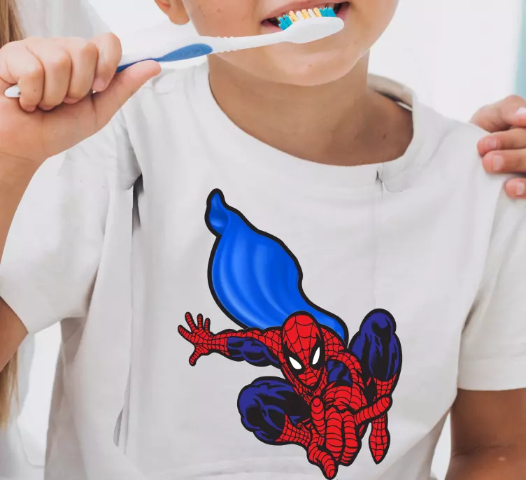 This Kids T-Shirt features Spiderman with a blue mantle, making it a great addition to any superhero fan's wardrobe. The design is bold and eye-catching, perfect for standing out in a crowd.