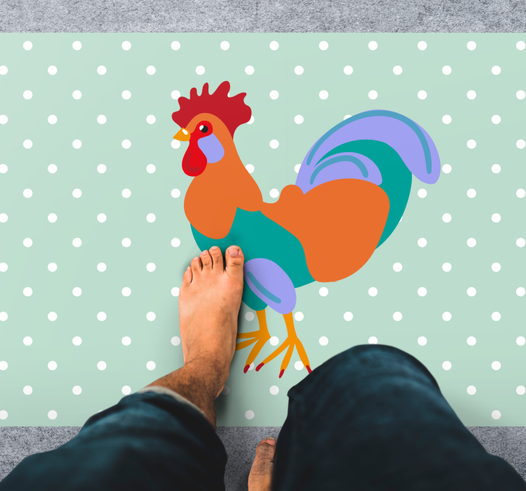 Transform your living space with the Animal vinyl rug with colorful rooster design animal vinyl rug! This stunning piece serves as both art and functionality, capturing the essence of playful decor. Its vibrant colors and whimsical design create an inviting atmosphere, making it an ideal choice for families and individuals alike. Let this charming rug be the centerpiece of your room and inspire creativity every day!