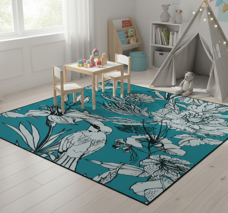 Animal vinyl rug with elegant white bird pattern