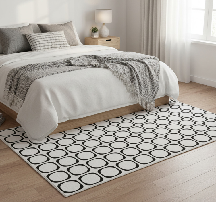 Bedroom vinyl rug in black and white tiles
