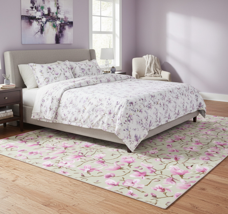 Bedroom vinyl rug featuring beautiful purple magnolia