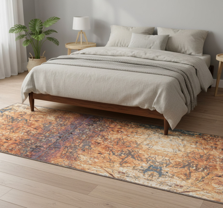 The Bedroom vinyl rug in brown and gray concrete pattern bedroom vinyl rug is a fantastic choice for anyone looking to elevate their decor. Its contemporary design enhances the visual interest of your space, creating a warm and inviting atmosphere that’s perfect for relaxation. This rug not only complements your existing decor but also serves as a focal point, making it a must-have for a stylish bedroom!