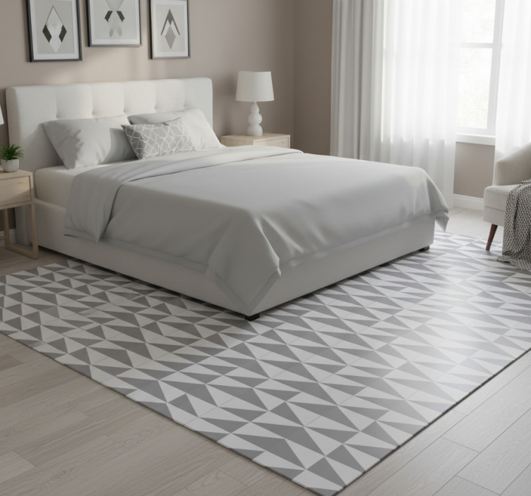 Bedroom vinyl rug in gray triangles