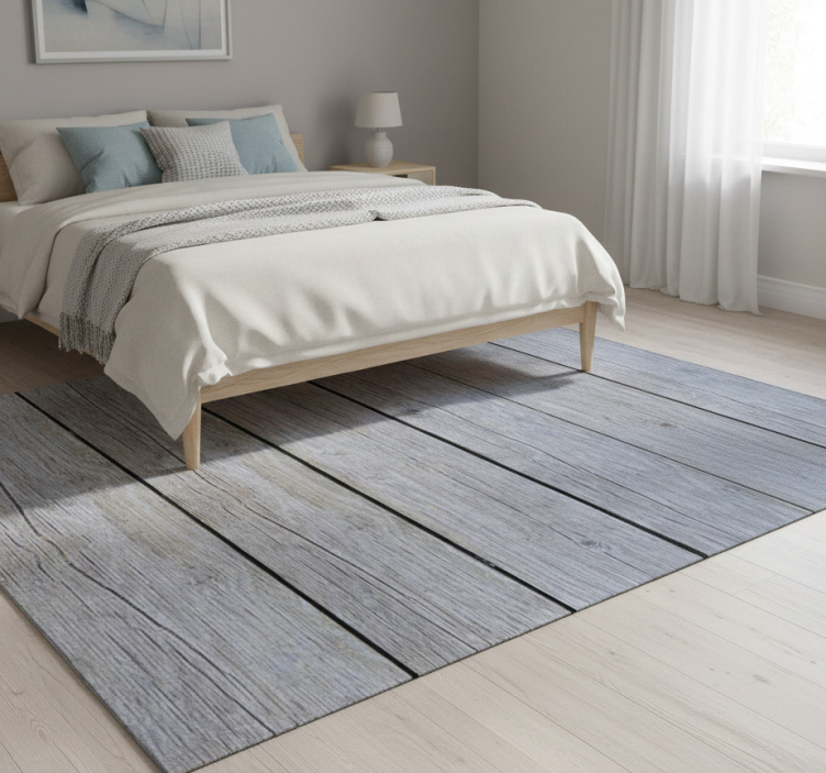Bedroom vinyl rug in nordic gray raw wood