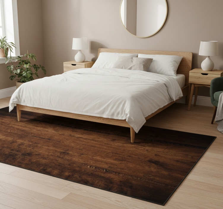 The Bedroom vinyl rug in raw dark brown wood finish bedroom vinyl rug is an exceptional choice for enhancing your bedroom's aesthetic. It seamlessly blends beauty and functionality, making your space feel inviting and stylish. The rustic charm of the wood finish adds depth to your decor, while its durable construction ensures that it will be a long-lasting addition to your home.