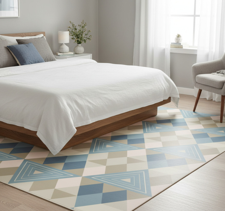 Bedroom vinyl rug nordic geometric blue pattern