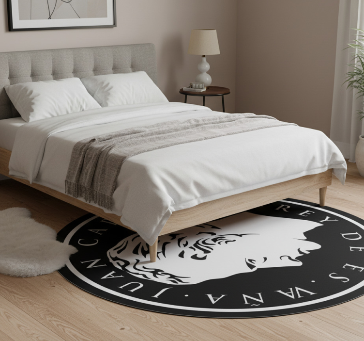 Reference: R24063Transform your space with our stunning Bedroom vinyl rug spanish king emblem adhesive! This beautifully designed rug features an eye-catching Spanish king emblem that adds a touch of elegance to any bedroom. Crafted with an artistic flair, this rug not only enhances the aesthetics of your room but also serves practical purposes with its anti-slip and scratch-resistant properties.