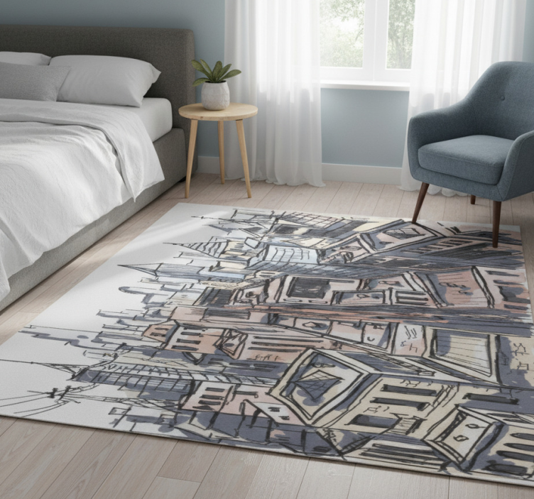 Reference: R22753The Aquarella city bedroom vinyl rug is a stunning addition to any space, featuring vibrant colors and captivating cityscape designs that bring a modern touch to your bedroom. With its artistic flair, this bedroom vinyl rug enhances the ambiance of your room, making it a perfect blend of style and functionality!