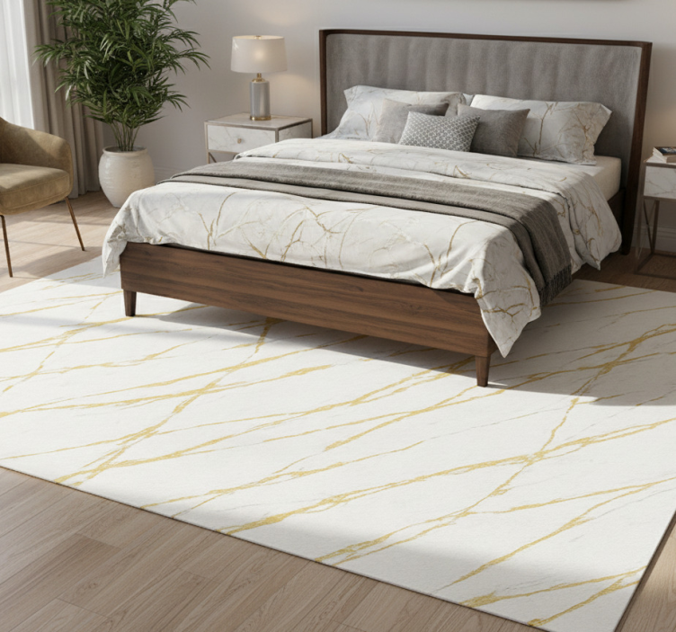 Bedroom vinyl rug white stone with gold veins