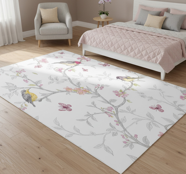 Bedroom vinyl rug with birds on branches