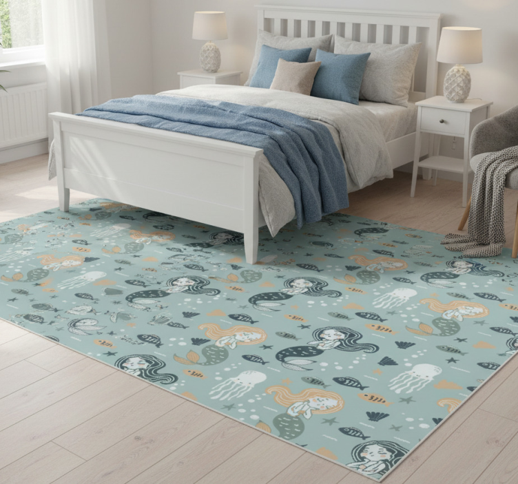 The Bedroom vinyl rug with blue magic mermaid design bedroom vinyl rug is the perfect addition to enhance your decor! Its playful design sparks imagination and joy, making every bedroom feel like a magical retreat. Not only does it beautify the space, but it also offers practical benefits. This rug is a delightful way to express your personality through home decor, creating an inviting atmosphere that your family and guests will love.
